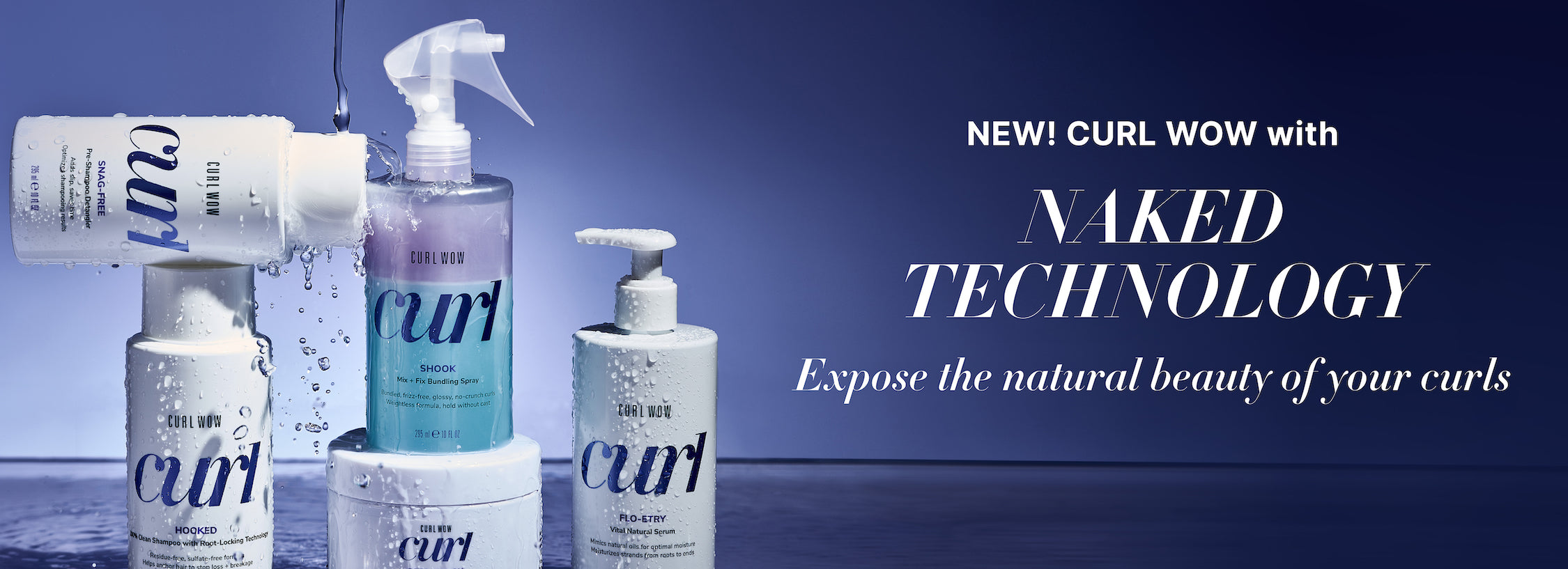 Imagine: perfectly bundled, bouncy, glossy, curls that look and feel like nothing is on your hair. Curl Wow's "Naked Technology" (our proprietary Profaxil-18 Complex™) moisturizes, defrizzes, and defines curls with new mico-dispersion technology.... so there's no weight, no greasy feel, no crunch, no rigid cast. Each formula optimizes moisture and minimizes breakage for super healthy, hydrated, springy results.