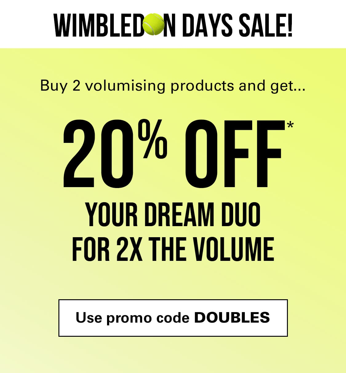 *Does not apply to orders before 6/7/22. 20% OFF code for Full Size Raise the Root (150ml/ 5.0 fl oz), Xtra Large (200ml/ 6.7 fl oz), Dream Cocktail Carb-Infused (200ml/ 6.7 fl oz), and Style on Steroids (262ml/ 7 oz), good through 10/7/22. Discount only valid when adding two or more of the products in this collection to your cart in a single order. Promotional codes can't be combined. Salons excluded. Whilst supplies last.