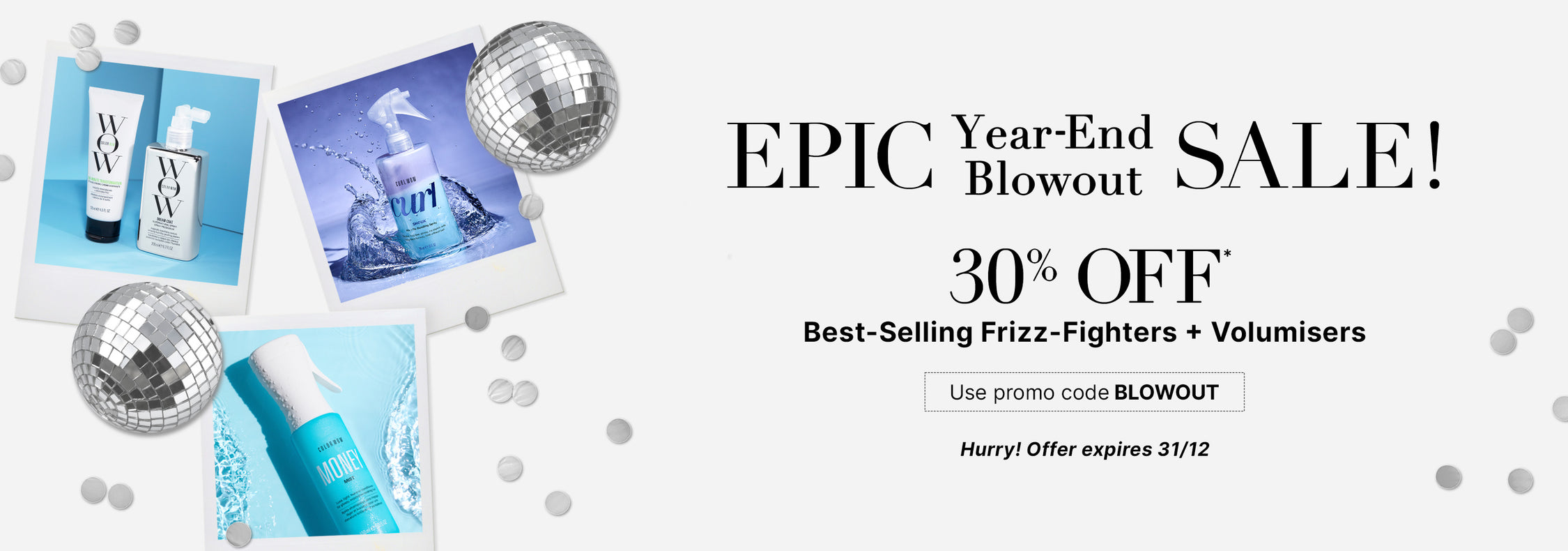 *Does not apply to orders before 26/12/25. 30% OFF code for Full + Super Size Extra Strength Dream Coat (6.7 fl oz/200ml), Full + Super Size Dream Coat Supernatural Spray (6.7 fl oz/200ml), Full + Super Size Dream Coat for Curly Hair (6.7 fl oz/ 200ml), Full Size Dreaming Advanced Repair and Resurfacing Treatment (7.5 oz/ 215ml), Full Size Money Mist (5.0 fl oz/ 150ml), Full Size Style on Steroids (7 oz/ 250ml), Full Size Dream Cocktail Carb-Infused Leave-In Treatment (6.7 fl oz/ 200ml), Full Size One-Minute Transformation Styling Cream (4.0 fl oz/120ml), Full Size Raise the Root Thicken + Lift Spray (5.0 fl oz/150ml), Full + Super Size Xtra Large Bombshell Volumizer (6.5 fl oz/ 195ml), Viral Volumisers Christmas Kit and Shook Mix + Fix Bundling Spray (10 fl oz/295ml), offer valid through 12/31/25. Promotional codes cannot be combined and are not valid on subscriptions under the Color Wow Subscription Program. Limit of one use per customer. Excludes select Christmas gifts + kits, value + travel kits, travel sizes, and merch. Valid exclusively on uk.colorwowhair.com. Whilst supplies last.