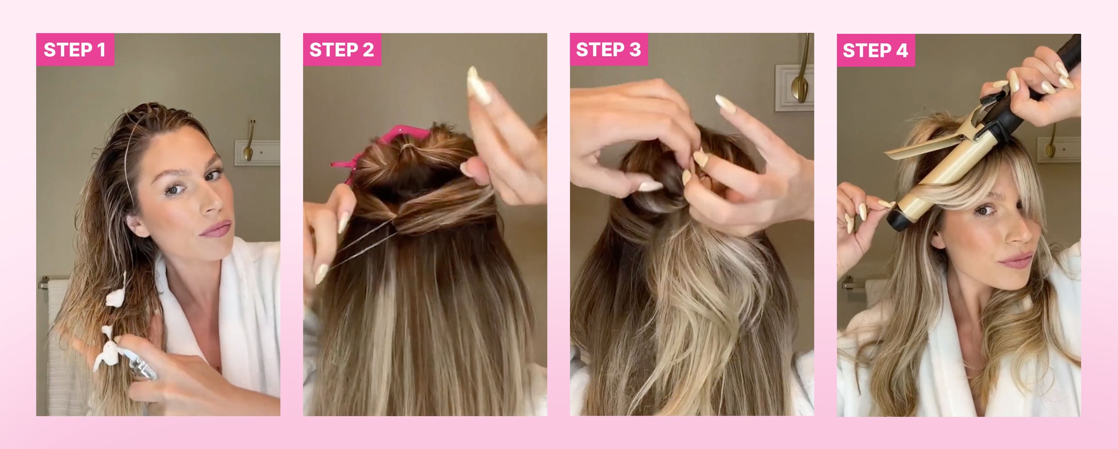 Step 1: Apply Xtra Large throughout damp hair. Working in small sections, blow dry hair then wrap around a roller. Set with Style on Steroids and let cool completely before removing.